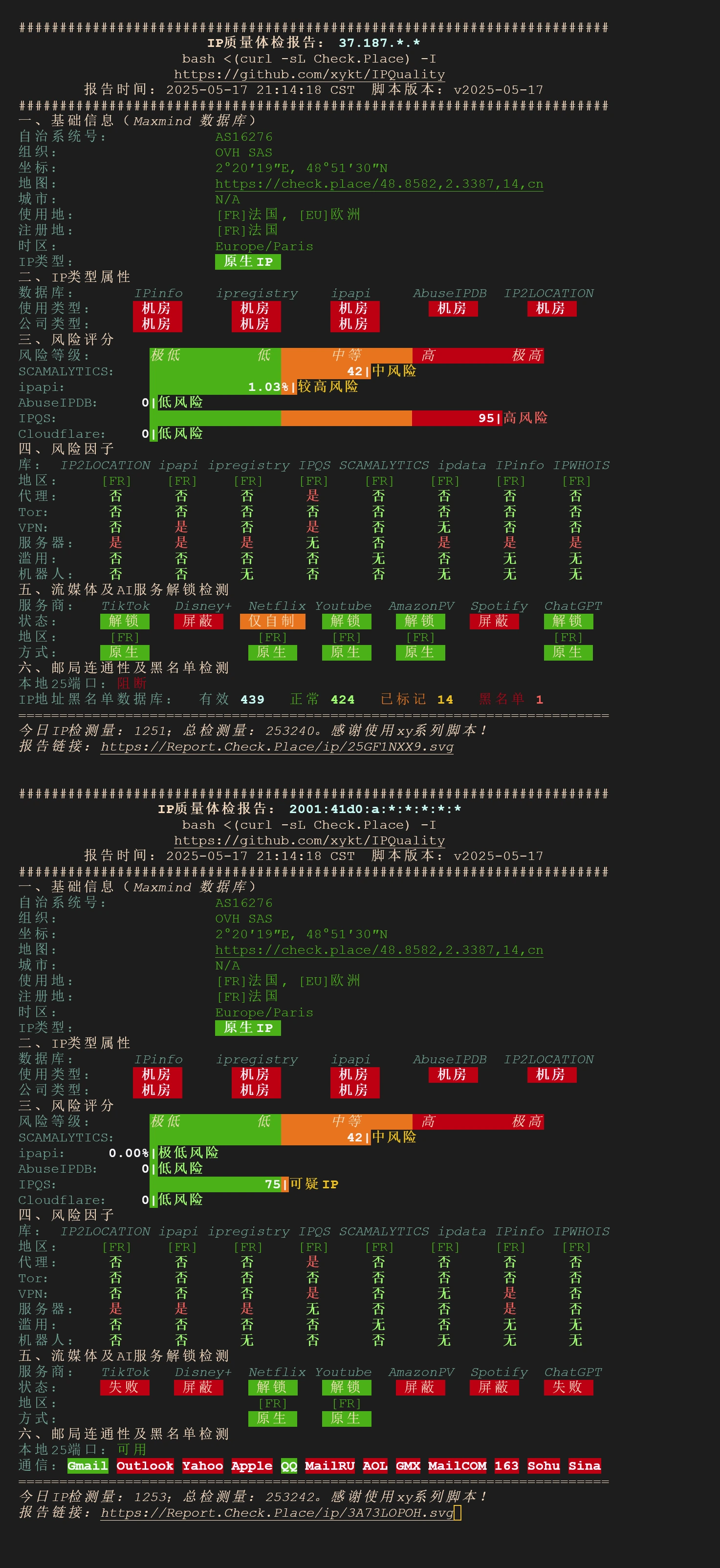 IPv4/IPv6 : ✔ Online / ✔ Online